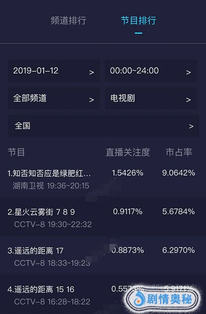 先看榜单前三名,可以看到收视率最高的三部剧依次是收视率高达1.54%的《知否知否应是绿肥红瘦》、收视率0.91%的《星火云雾街》,以及收视率0.88%的《遥远的距离》,其中收视率破1的《知否知否》一骑绝尘,该剧也是榜单中唯一一部收视率破1的国产佳作,我们可以说该剧是当下最受欢迎的国产剧。