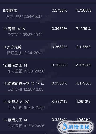 对于上面的问题,相信每个人都会有自己的答案,那么我们该如何评判一部剧受不受观众喜爱呢?小编认为收视率可以为我们解答,下面和小编一起,让我们一起走进周日更新的电视剧收视率排名,来看看哪部剧能赢得电视机前观众的点头认可吧!