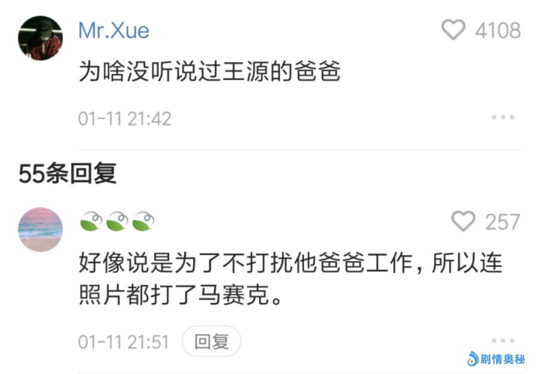 想必有许多网友都不明白为什么王源爸爸要这么隐私自己的肖像权呢,对于这一点小编本来也很是不解的,但是有一位小汤圆给了小编答案,原来这背后的原因与王源爸爸的工作有关,王源不想打扰爸爸的工作,所以才做了这些!