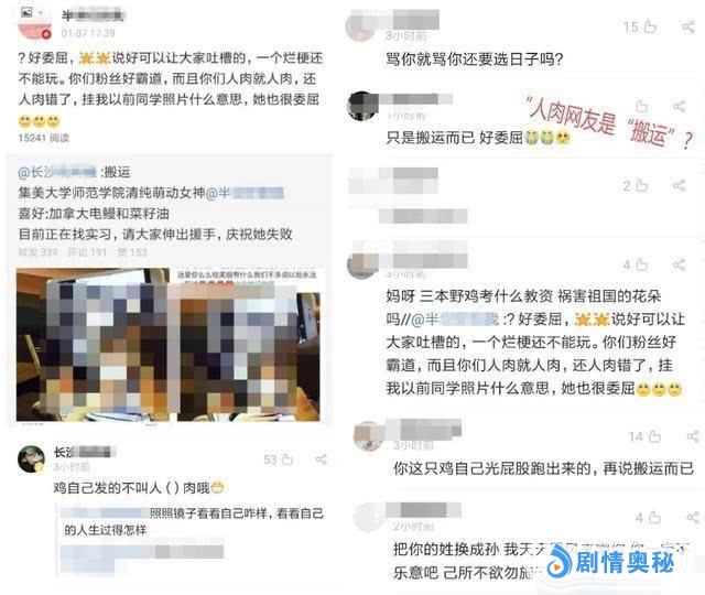 段子,也就是为了博人一笑而已,没什么大事。但是,接下来的事情,小编有点看不懂了。就在这个段子在网上流传开之后,张艺兴的粉丝却炸了。首先,是张艺兴粉丝人肉出来了这位写段子的人,然后把照片挂到了网上,于是强烈的炮火攻击开始了。至于那些辱骂言论,小编就不在一一为大家复制了。