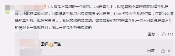 其中,为了证明邓伦是发信息给身旁杨紫,有网友便率先指出:“邓伦发完信息没多久,本来一直看台上的杨紫,眼睛看都不看座位就知道手机在哪,还能抓得那么准,只能说明手机自己震动或是发出声音,所以杨紫才能感受到手机的位置”。
