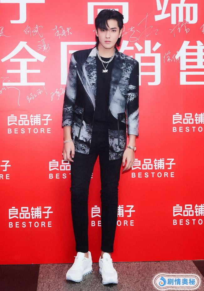 而吴亦凡这身衣服比较清爽一些,上面是一件黑色印花外套,充满了时尚感,搭配了黑色休闲裤,看上去又非常大方,搭配了一双白色运动鞋,这样看上去他的身材特别好,比例简直就是完美。