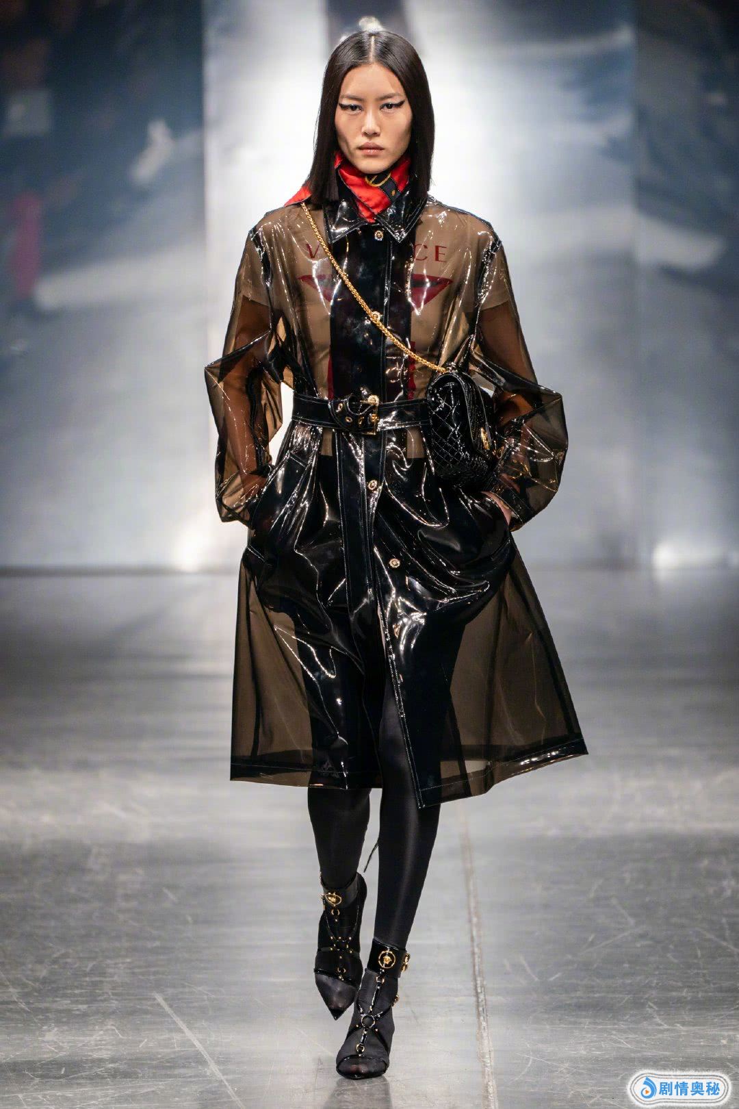 除了素颜走秀的造型之外,刘雯还有一套穿着一件黑色PVC雨衣LOOK。不过这套造型要比素颜那套稍微好一点,至少发型是正常的中分,而妆容也衬托出了刘雯的霸气。和刘雯一起走秀的还有很多全球之名模特,比如丹麦Freja Beha Erichsen(阿福),气场不要太强,小编个人觉得她的造型比大表姐的好看很多。