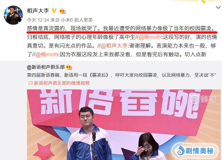 不知道李宏烨在学生时代,是否亲身经历过校园霸凌事件,但是他真挚的表演已经触动了很多人的内心,这也是目前为止,看到李宏烨唯一一次现场流泪,一名相声演员能够被自己的作品打动,证明他确实是用心创作了。
