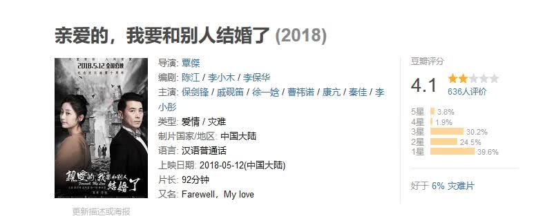 在2018年的电影中,一部《亲爱的,我要和别人结婚了》震撼荧幕。这样的一部电影,来自于一封信,来自于2008年汶川地震真实故事。不过,这部电影的豆瓣评分却不高,只有不到5分。诉说真爱无敌。