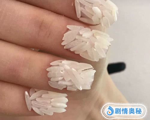 大米牌指甲,在指甲上面全部铺满了大米,每一颗大米都是颗粒饱满,晶莹剔透简直完美到无懈可击,这样又环保又漂亮的大米真的是过年的首选,不知道你会不会选择这一个呢?
