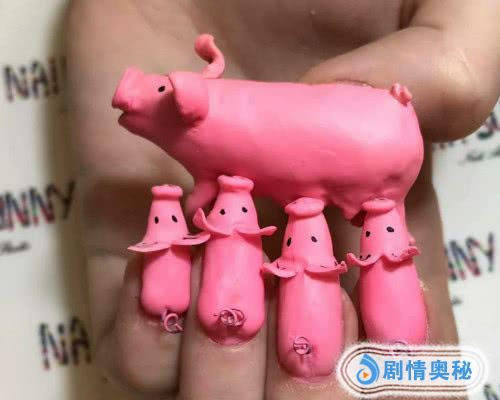 可爱的小猪指甲,每一个指甲上面都有着可爱的小猪猪,将五个指甲合并到一起就像是猪妈妈在喂自己的猪宝宝一样,看起来也是非常温馨的,同时也是非常有个性的。你会选择这一个吗?