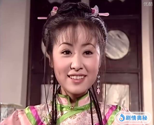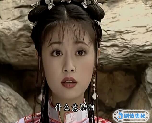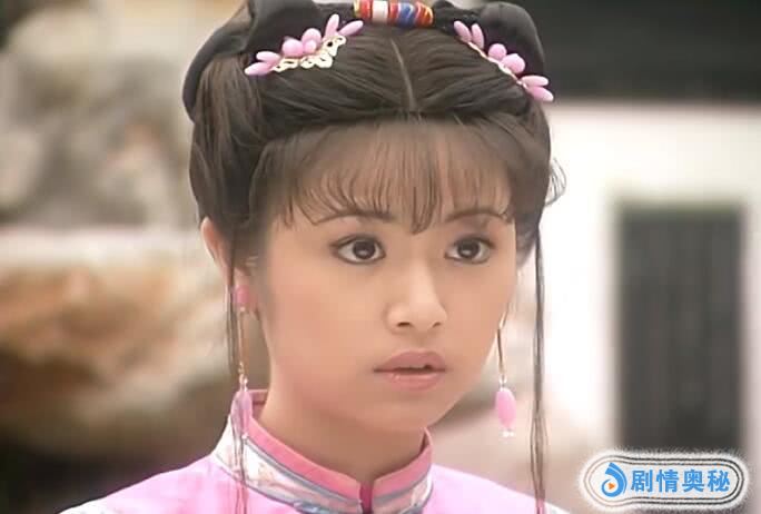 紫薇穿着粉色的民女装,戴着粉色发钗和粉色耳环,眼睛睁得大大的,一副天真懵懂的模样。