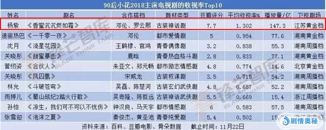 前面说到《香蜜沉沉烬如霜》拿下了今年豆瓣大陆电视剧高分第5,其实杨紫主演的电视剧一直叫好又叫座,稳坐90后小花2018电视剧收视率、口碑、播放量第一,遥遥领先。