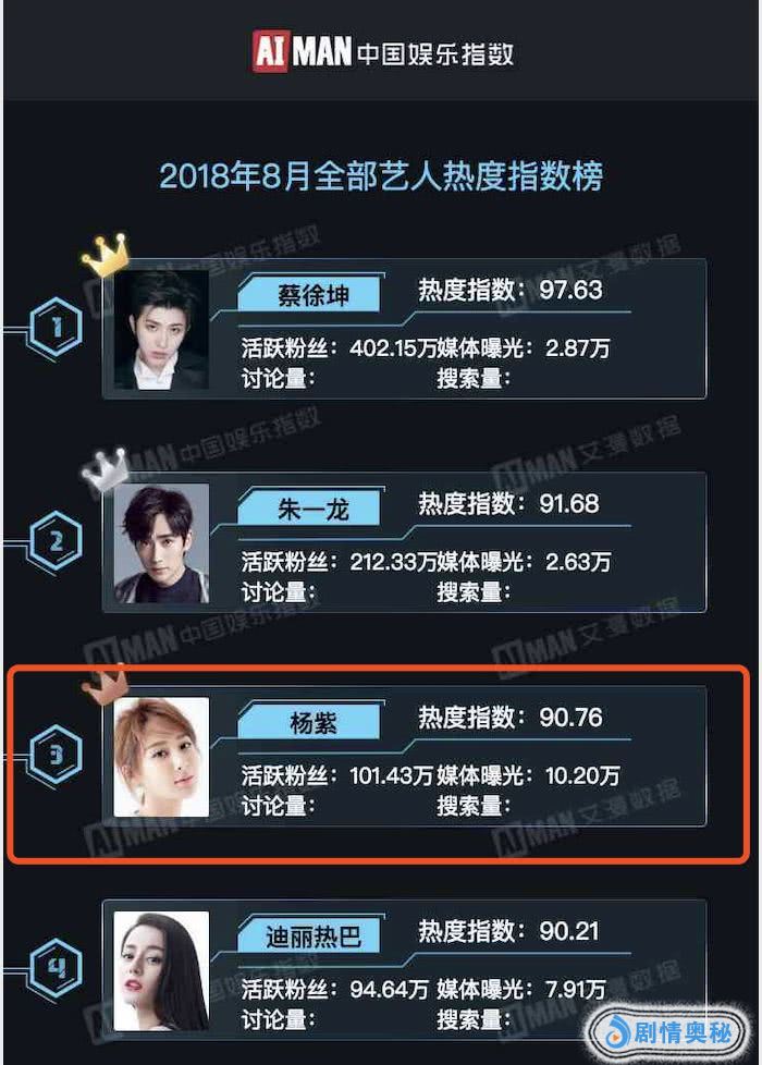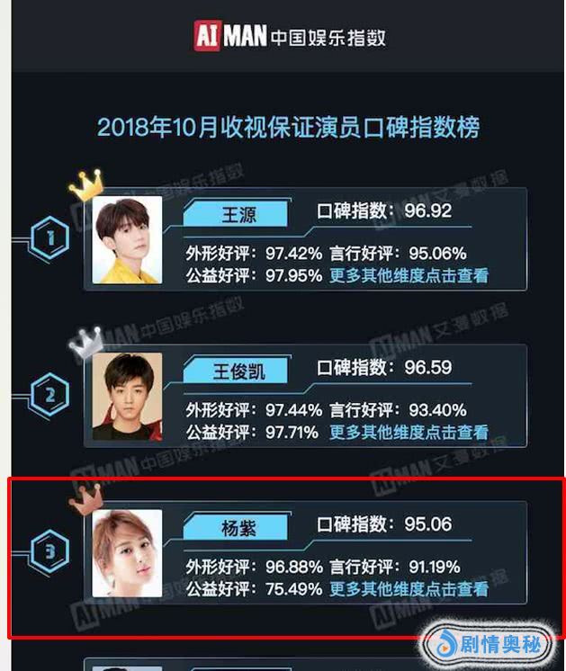除此之外,剧播期间杨紫的艾漫数据收视保证演员口碑指数月榜第3,位列90后女艺人第1;