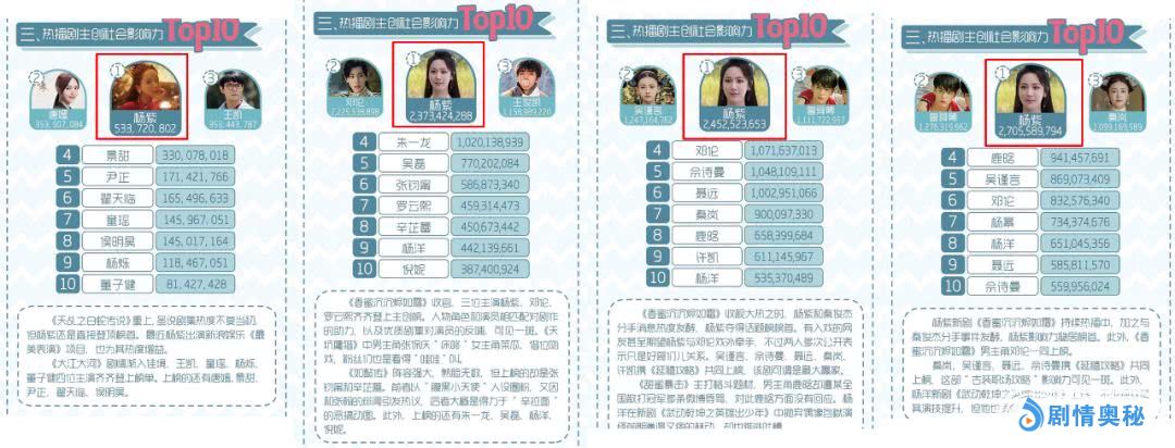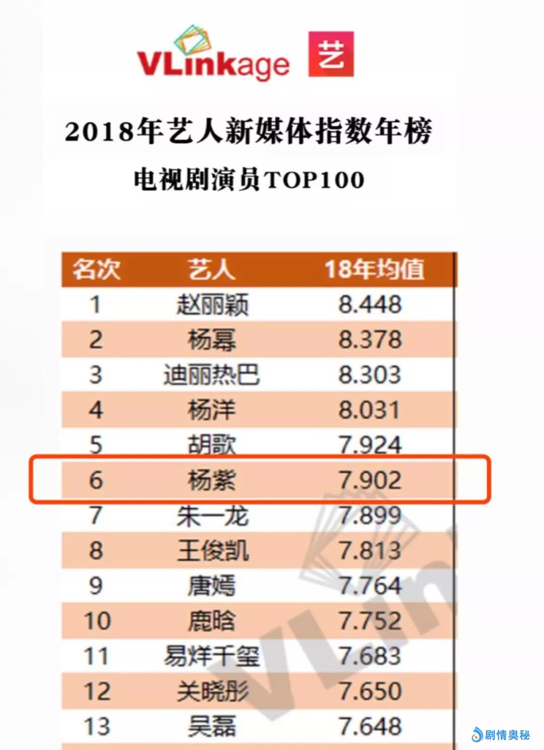 同时,杨紫在热播剧主创社会影响力榜单中连续拿下第一名;