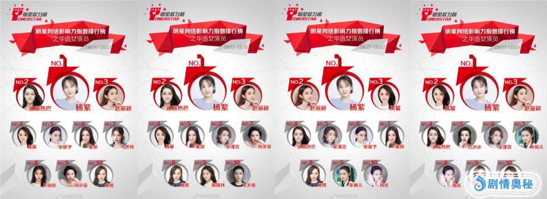 明星权力榜也连续四周获得第一,显示出了杨紫极大的影响力和观众认可度。