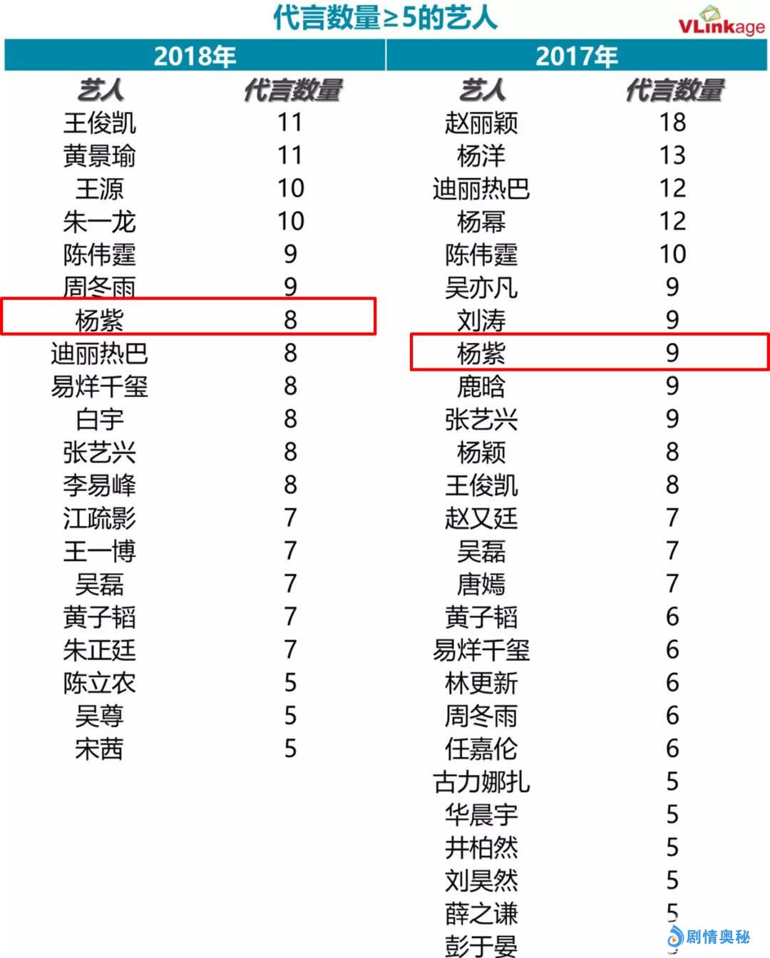 杨紫的商业代言无论是数量还是质量在女演员中都排在前列。
