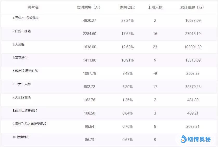 其他电影方面,上映已经23天的《大黄蜂》也依旧火热,单日还能拿下一千六百多万票房,前几天票房破十亿后,下一个目标就是11亿票房了,现在距离大年初一还有完整的9天,感觉《大黄蜂》还是有机会做到的!最后想弱弱问句,春节档的电影,大家都开始买票了没?