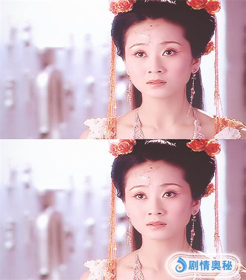 本以为仙女们的花朵头饰是同款,但是后来仔细看才发现,黄儿的跟其他六位仙女的都不同,因为她的花朵是“拉花”,就是带有彩带的那种,像生日蛋糕上系的“蝴蝶结”一样,有长长的“尾巴”,黄儿的花朵后面就有黄色的彩带,从背后才看得到,看来这也是导演的安排,为了凸显黄儿的与众不同吧。