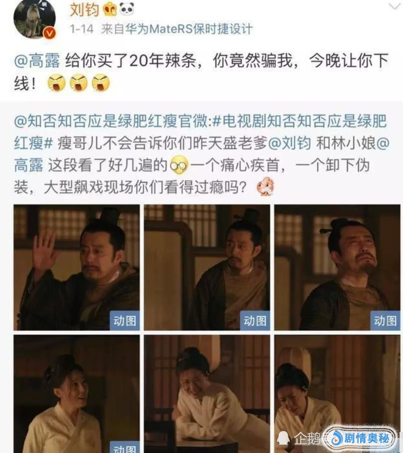 搞笑的刘钧也在小妾死去的当晚在微博上发出了一些感慨,真的是让人看了好好笑。其实他也演过了很多的戏,什么样的角色也都演,一些比较火的剧也在其中,可是呢,就没有让他的名气大涨,一直平平。现在的知否知否应是绿肥红瘦让他的名气也变大了,更多的人认识他了,好了,说到这里,大家对于这件事情有什么看法,可以在下面留言评论,让大家一起看一看吧。