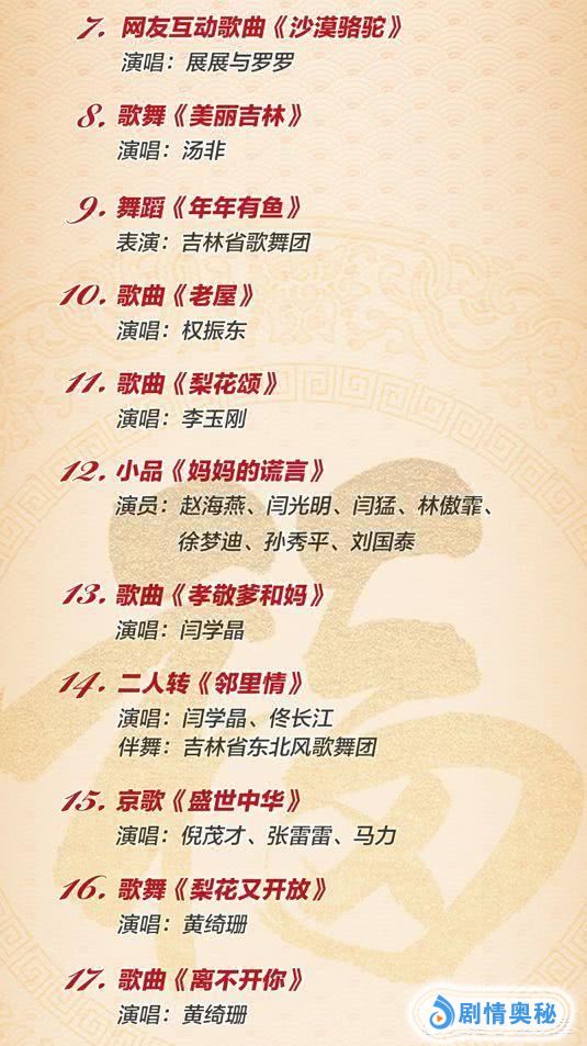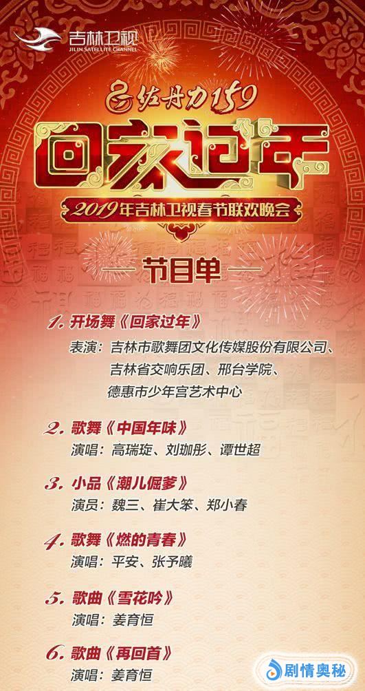 2019吉视春晚首播时间:1月28日19:30 ,通篇以“回家过年”为主题。看点有:周华健学东北话,姜育恒品查干湖鱼,李玉刚女装扮相惊艳全场,黄琦珊现场飙高音,语言类小品爆笑不停,闫学晶献唱由吉林人原创的歌曲《孝敬爹和妈》等,让我们一起期待2019吉视春晚开播。(图源水印)