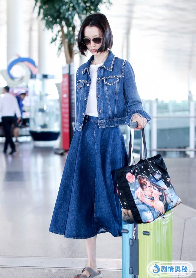 私下的时候,她穿衣服以舒适为主,穿了一件白色的T恤,简单大方的感觉,外面穿了一件蓝色的外套,看着简单时尚,她的气质超级好,搭配了一条深蓝色的裙子有点像百褶裙的感觉,超级时尚。