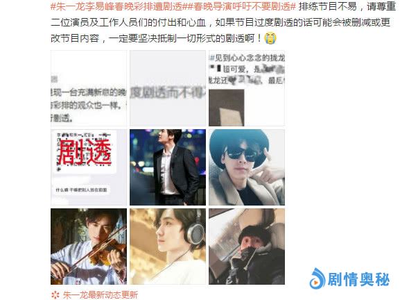 对此导演还补充道,往年也有此类细节被泄露的情况,最终结果都会对于节目造成一定影响,或者删减更改,或者直接被删。也就是说朱一龙李易峰的节目因为某些人的一时小失误,很有可能造成节目被删减的分享。这样会影响到明星的彩排问题,额外增加工作量。