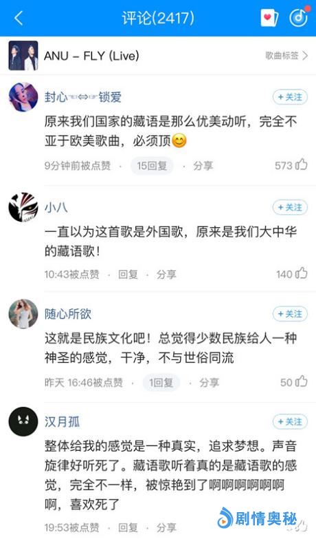 上线酷狗音乐后,《FLY》的评论也瞬间飙升至999+。原来藏语歌是如此的“优美动听”,“完全不亚于欧美歌曲”,更多了“一种神圣的感觉”,网友们都被“被惊艳”到尖叫,民族音乐“必须顶”啊!