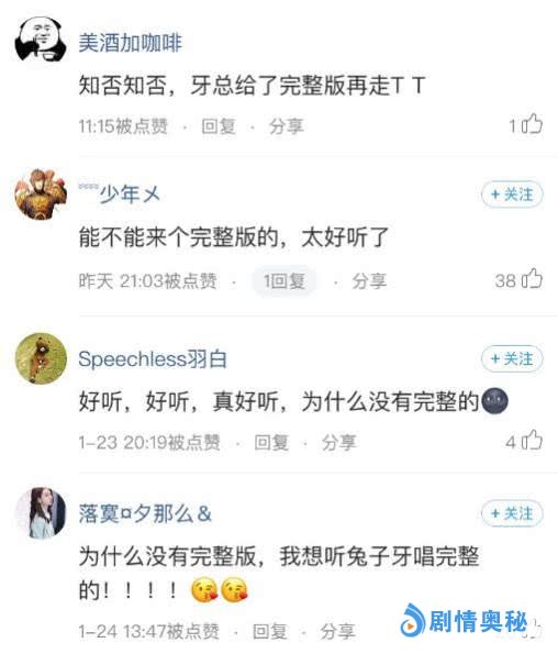 除了在微博引起剧迷们的疯狂打call,兔子牙翻唱的《知否知否》也在酷狗上收获了无数好评,除了大赞“好听”,更有不少网友跪求完整版:“知否知否,牙总给个完整版再走!”