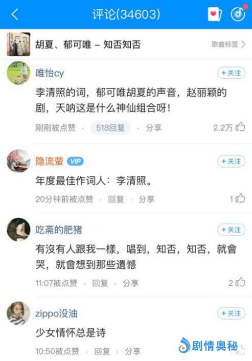 该剧的主题曲《知否知否》也受到剧迷的一致好评。李清照的“少女情怀总是诗”,婉转的旋律搭配胡夏郁可唯的绝妙音色,让观众感受剧中缠绵悱恻的倾诉!歌曲上线酷狗音乐后更是掀起收听热潮,疯狂收割好评1.4万+~