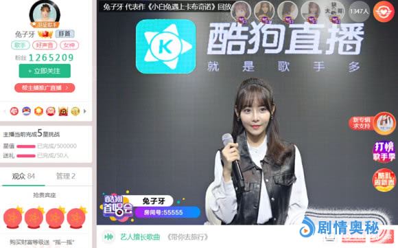 除了不定期上传自己的作品,兔子牙还有一个隐藏身份,那就是酷狗直播的签约歌手!每天晚上粉丝们都可以在兔子牙的酷狗直播间畅享兔子牙的甜美歌声,还有可能被牙总翻牌亲密互动!除了牙总发布在短视频的单曲外,网友还能自己点歌让牙总翻唱,帮牙总录制粉丝专属MV,粉丝福利简直666!