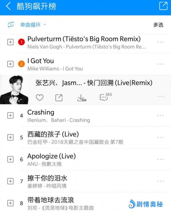 同时,《快门回溯》也光速上榜酷狗飙升榜TOP3,可谓受欢迎程度爆棚!