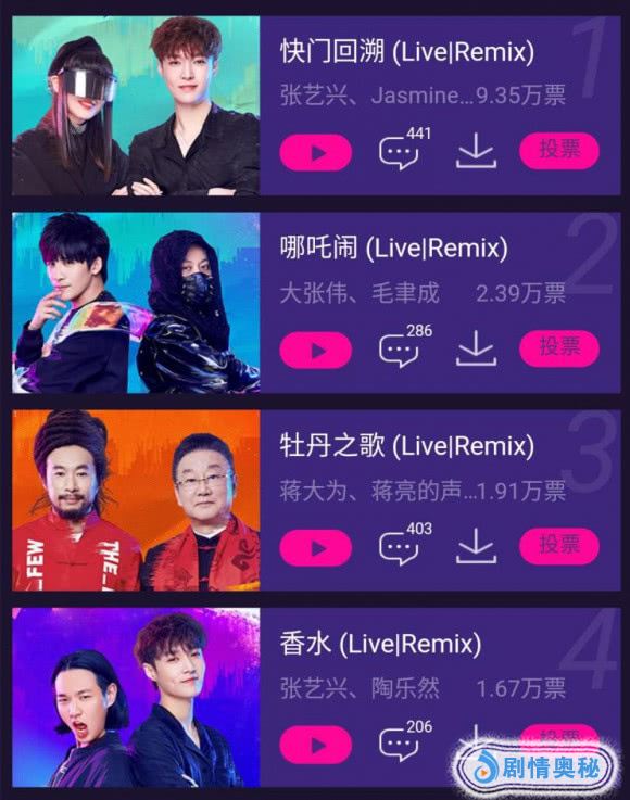 当晚,节目共诞生7首电力满格的歌曲,实时上架官方战略合作伙伴酷狗音乐。其中,Jasmine feat.张艺兴《快门回溯》更是以9.3万票的成绩夺得酷狗专区第一!