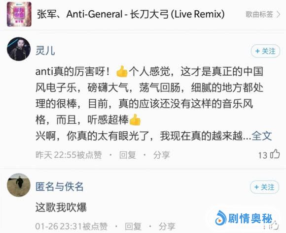 但尚雯婕却质疑Anti-General在本次竞演中只是担当了“伴奏”的角色,直言“看不明白”。不过,也有不少人力撑这首《长刀大弓》,感叹“这才是真正的中国风电子音乐,磅礴大气,荡气回肠”,更在酷狗评论区放言“我要吹爆这首歌”。