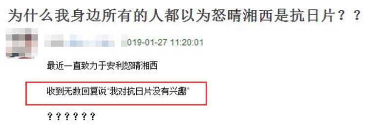 当然最近因为这部戏的名字,也是闹了一点笑话。因为这部戏的高质量,很多人都向其他人安利这部剧,但是很多人都认为《怒晴湘西》是一部抗战剧,加上中国的一些抗日剧质量确实不高,所以很多人回复的是”我不看抗日剧"。
