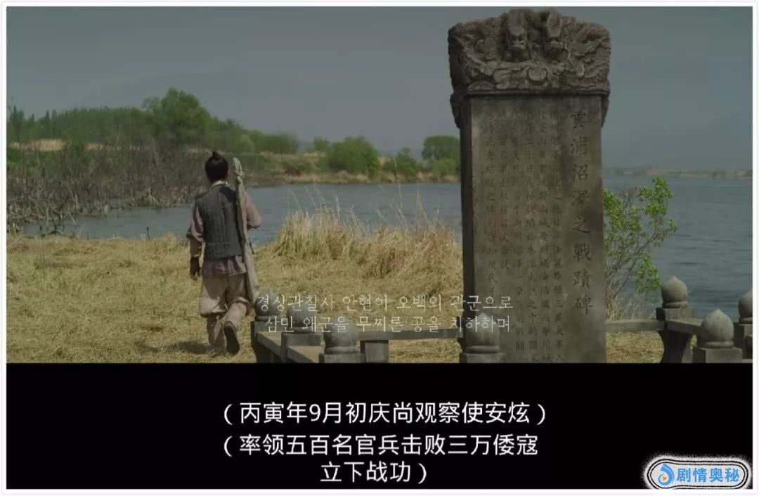 剧集也给了一些细节,和世子一道的“火枪手”路过一块战绩碑,上面写着安炫曾经率领500官兵击退3万倭寇。这样“以小胜多”的战役闻所未闻,除非使用了某种神秘力量。