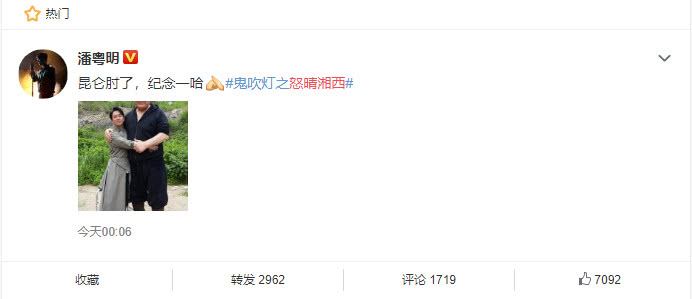 照片中的潘粤明姜宝成满脸笑意,这对荧幕搭档在现实中的关系同样融洽,那么昆仑的牺牲真的没有任何预兆吗?答案是否定的,原来《鬼吹灯之怒晴湘西》官博早就通过海报给了提示。