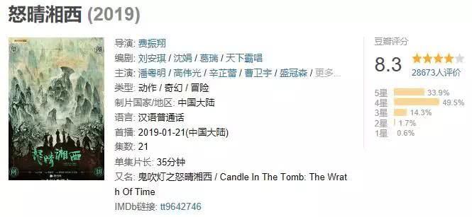 好在这次的《怒晴湘西》一经开播便好评如潮,斩获了《鬼吹灯》系列影视作品的历史最高分,也算扳回一城。