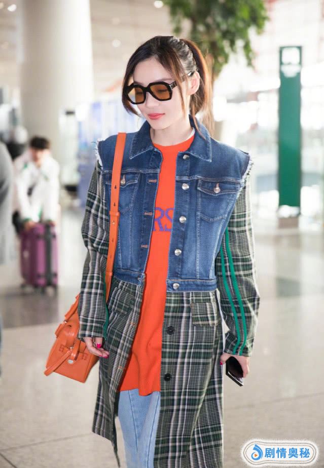 袁姗姗的打扮,男朋友看了会害怕,简直要比男朋友还帅气的节奏啊,她扎着比较高的马尾,露出了一张比较精致的脸,她的皮肤是比较白皙的,看起来很好看,搭配一个橘色的包包,和T恤形成了对比!