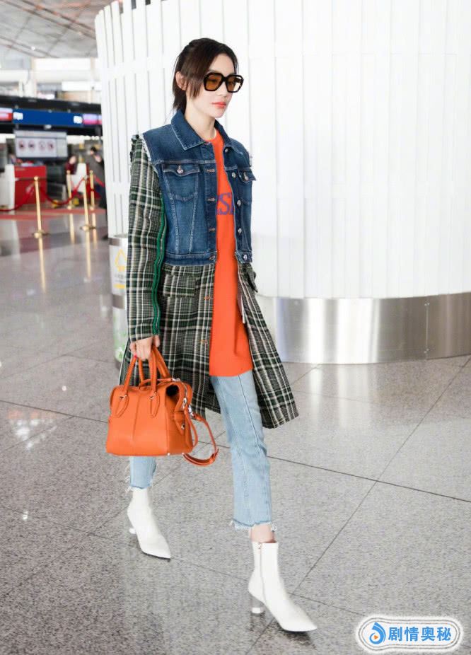 袁姗姗这次的打扮很好看,她选择了一件橘红色的T恤,看着就超级简单的感觉,却很显肤色,看着很美,而她的鞋子前面看着是靴,她这次穿了一双白色靴子,简单大方显气质。