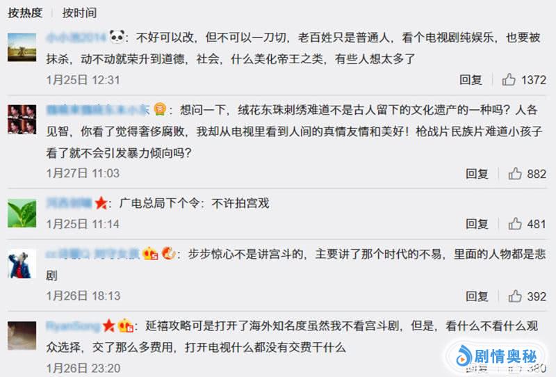 最近几年,根据网络小说改编的宫斗剧、宅斗剧、历史穿越剧非常受欢迎,很多观众也很爱看,对于《北京日报》发文中所称的5个负面问题,观众们也有自己的想法。很多人称看电视剧就是娱乐,并没有想太多,如果这些宫斗剧中有此类的问题,不能一杆子打死,将出问题的部分改掉就可以了,其他情节还是不错的。