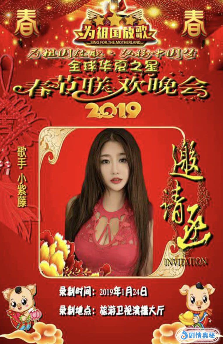 这一次,她就是以歌手小紫藤的身份,来参加2019全球华夏之星春节联欢晚会录制现场的。此次晚会的主题为“为祖国放歌,弘扬中国梦”,多位知名艺人和明星汇集晚会现场,倾情奉献自己的才华,只为给观众带来一场别开生面的晚会。