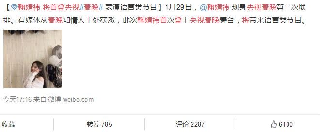 网友们也表示鞠婧祎也该火了,毕竟小提琴,古筝,钢琴样样精通的她不火都觉得可惜了,小编还是挺期待鞠婧祎在春晚的表现了,不知道鞠婧祎带来的“语言类节目”会是相声还是戏剧或者是歌曲?但不管怎样,今年的央视春晚,有鞠婧祎在一定看!