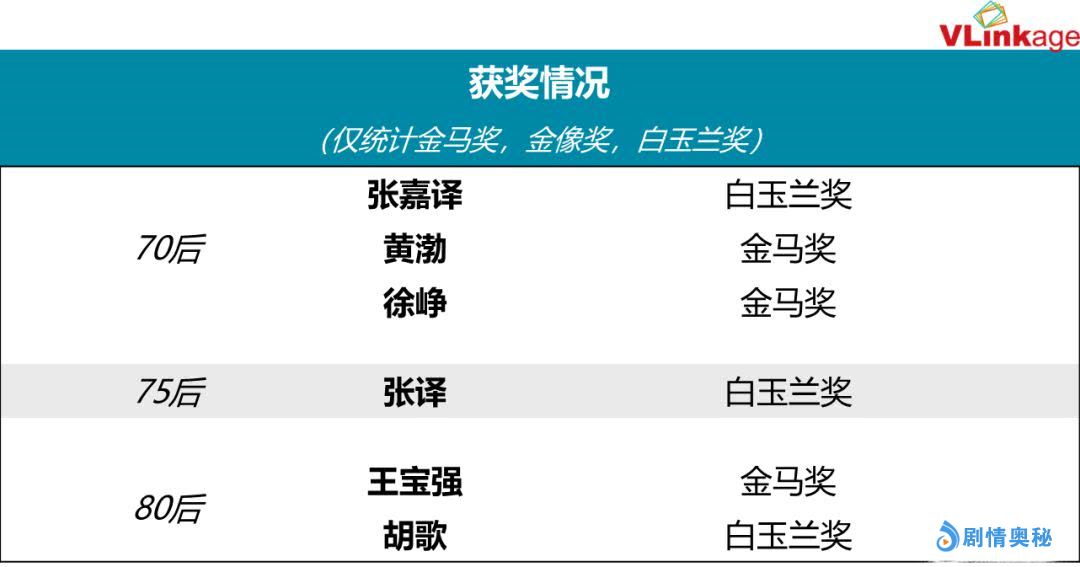在这23位男演员里,只有6位获得上述奖项,分别为70后张嘉译、黄渤、徐峥;75后张译、80后王宝强和胡歌。遗憾的是,85年之后的这些男演员代表们,都没能拿到高含金量的大奖。