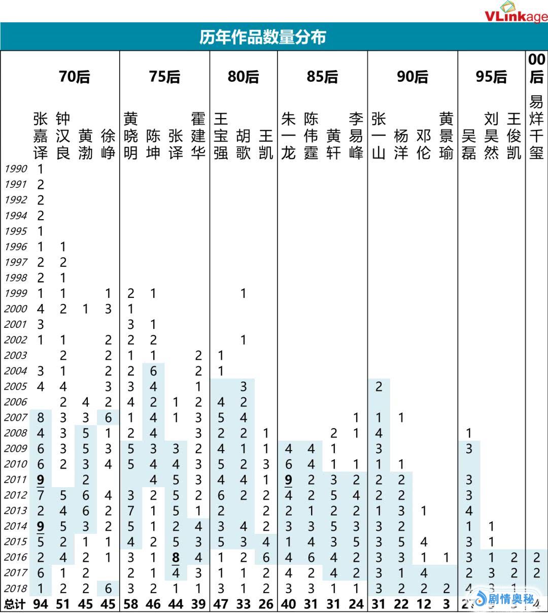 从数量上来看,张译、王凯、钟汉良各有3部作品上榜,张嘉译、王宝强、胡歌和刘昊然则分别有2部作品上榜。