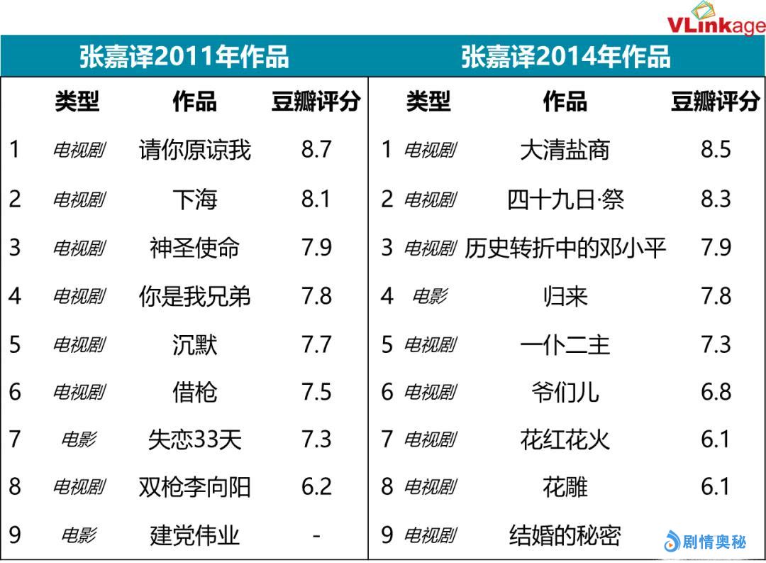 在这些男演员里,创作爆发力最惊人的为张嘉译,2011年和2014年分别有9部作品播出,作品数量高达9部,难得的是,这些作品还能保持较高的口碑,堪称高产高质款劳模。