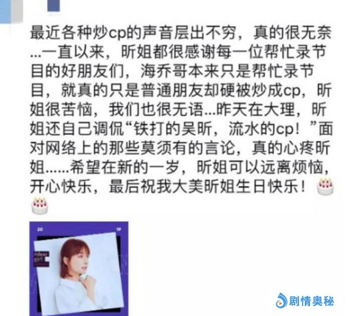 尤其是在快本上,两人也是一脸的甜蜜啊,唱情歌互动。还有被大家撮合的感觉,其次就是两人看着也是配一脸。结果这才刚被海星给甜到,给圈粉。但是没想到如今就有疑似工作人员来澄清了,据说还是吴昕工作室的。而最近她在直播上,也说了一些话,说不要伤害她的朋友什么的,可以骂她但是不要骂别人。