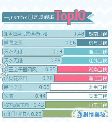 最近有读者问小编,时下哪部电视剧的收视率最高?是《知否知否》?是《幕后之王》?还是《小女花不弃》?今天小编就带大家走进新鲜出炉的电视剧收视率TOP10榜单,哪部剧的收视率表现最好,你一看便知。