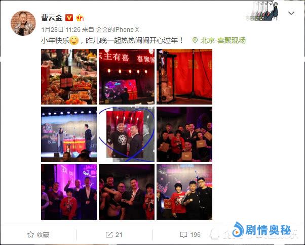 原来啊,在小年夜期间,曹金和小岳岳都发了祝福的微博,只不过转评赞的数量却是啪啪打了某人的脸啊。众所周知,曹金从德云社离开之后,自己创办了听云轩,对外宣称是要突破传统相声,打造全新的相声模式。从他发布的微博来看,小年夜都在忘我的工作,也是很敬业啊,不过看这微博的情况,观看他表演的人数很少啊,而且还是为别人祝寿,精心拍了九张照片发了微博祝大家小年快乐,这么忙还有空发微博祝贺大家,也是挺为大家操心的,不过这微博只有寥寥无几的转发和评论,人气也是很低了啊。有人调侃道这是多大的勇气敢转发曹金的微博,不怕被好友拉黑了啊!