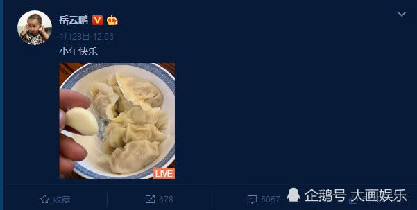 反观小岳岳这边,只是发了一张饺子配蒜的照片,并且只写了一句“小年快乐”,没多长时间就有了将近五千评论,五万赞。这可十分尴尬了啊,看来曹金精挑细选的九张照片还比不上岳云鹏的一碗饺子。同样是出身德云社的相声演员,差距怎么就这么大呢?!欢迎朋友们在评论区留下你们的看法。