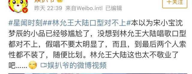 其实专业的演员,要在直播的舞台演唱歌曲,即使跑调也没什么大不了的,毕竟不是专业的。但竟然选择假唱,那就表现的像一些,最起码口型应该对得上吧?王大陆和林允一开始是口型对不上,害得导演组一直给他们远镜头,避免穿帮。后来这两个人“破罐子破摔”,口型都懒得对了,干脆比划两下,应付了事。难怪网友们说“原来假唱和对口型都需要真本事!”