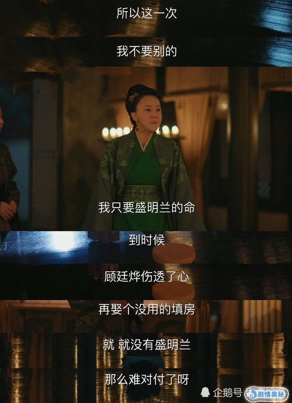 秦大娘子过世后,顾老侯爷浑浑噩噩,如行尸走肉一般。顾廷烨的痴情和倔强和老侯爷一模一样,小秦氏正是看透了这一点,她发现了明兰就是顾廷烨的命,如果明兰不在了,顾廷烨也会崩溃。退一步说,就算他将来再娶妻,也不一定能娶到像明兰这样,让小秦氏束手无策的了。小秦氏打的一手好算盘,差点就让她成功了。