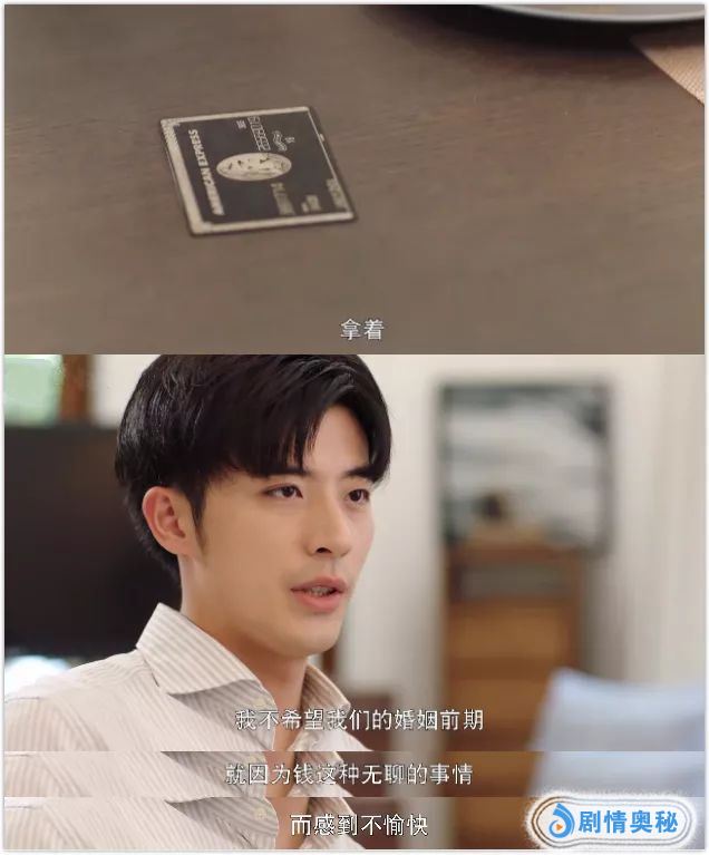 平日没事男主就甩给女主一张可以无限额刷的黑卡,女主不接受,他就情景重现何以琛经典语录:不希望结婚前期就因为钱这种无聊的事闹得不愉快。