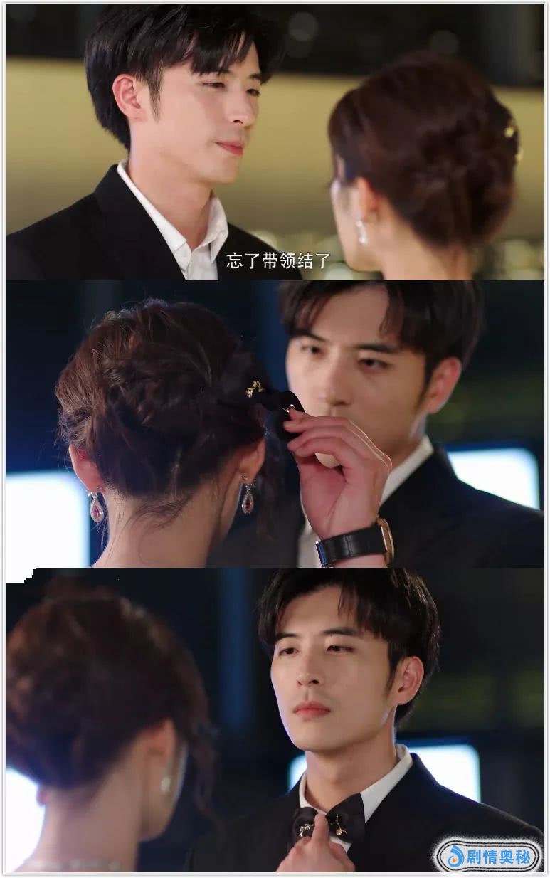 男主忘记带领结,就含情脉脉地从女主头上取下蝴蝶结作为领结,这种暗戳戳的小动作是最容易打动女生的。